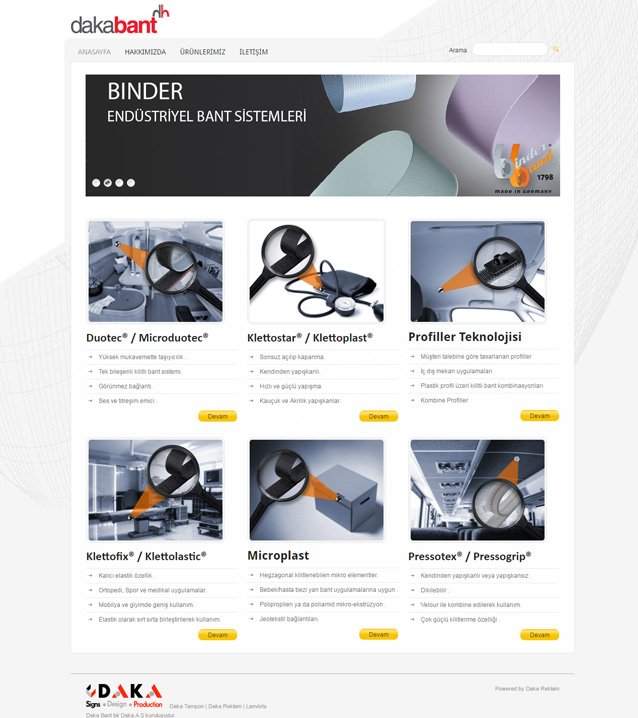 Daka Binder Bant için hazırlamış olduğumuz web sitesi Html5, Css3, Jquery teknikleri ile kodlanmıştır. Bu sayede ziyaretçilerine kolay ulaşım ve rahat dolaşım imkanı sunmaktadır.